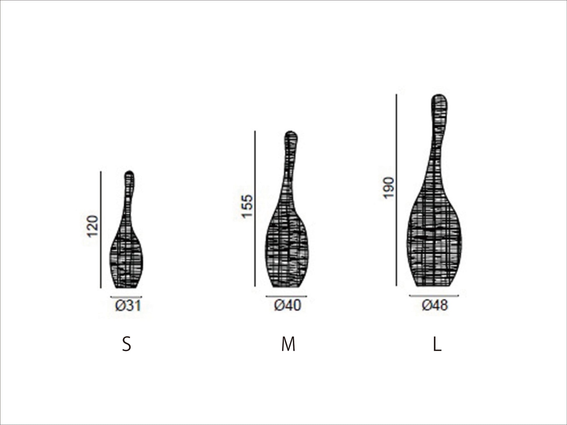 S:φ31 高さ120cm M:φ40 高さ155cm L:φ48 高さ190cm