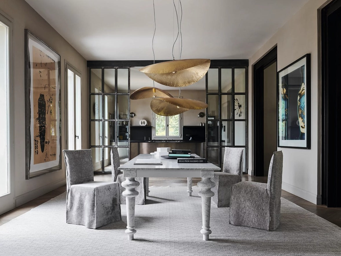 BRASS95は、真鍮の質感と輝きを生かしたペンダントランプ。職人の手作業によって一つひとつ丁寧に仕上げられており、素材そのものの風合いを最大限に引き立てています。真鍮ならではの柔らかな光が空間を包み込み、使うほどに深みと味わいが増していく経年変化も魅力のひとつです。モダンにもクラシックにも調和するタイムレスなデザインで、ダイニングやリビングなど、どんな空間にも上質なアクセントを添えます。単体ではもちろん、複数を組み合わせて吊るすことで、より印象的な空間を演出できます。