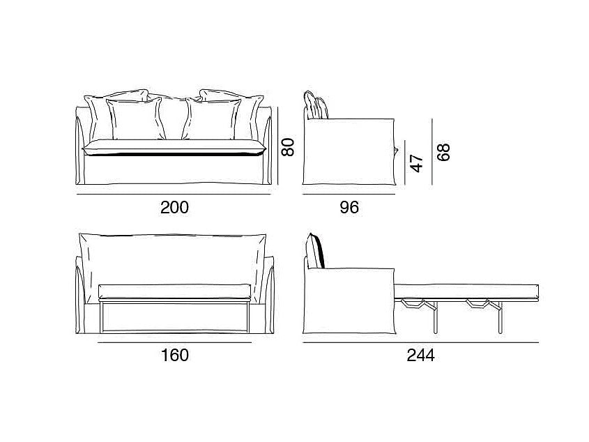 Remarks : カバー取り外し可能。クッション60×60cm3個、50×50cm2個、折畳み式金属フレーム、マットレス(W1600xD2000xH110mm)付き。