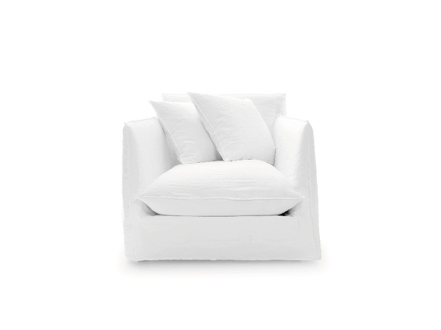 GHOST01は、シンプルでありながら独特の存在感を放つ1人掛けソファです。ふんわりとしたクッションに深く身を委ねると、まるで柔らかな布に包まれているかのような心地よさを感じられます。取り外し可能なファブリックカバーは、豊富な素材とカラーから選択でき、季節や空間の雰囲気に合わせて自在に掛け替えることが可能です。カジュアルでありながら上品さを兼ね備えたデザインは、リビングや寝室、書斎などあらゆるシーンに自然に溶け込みます。タイムレスな美しさと快適さを兼ね備えた、GERVASONIを象徴する一脚です。