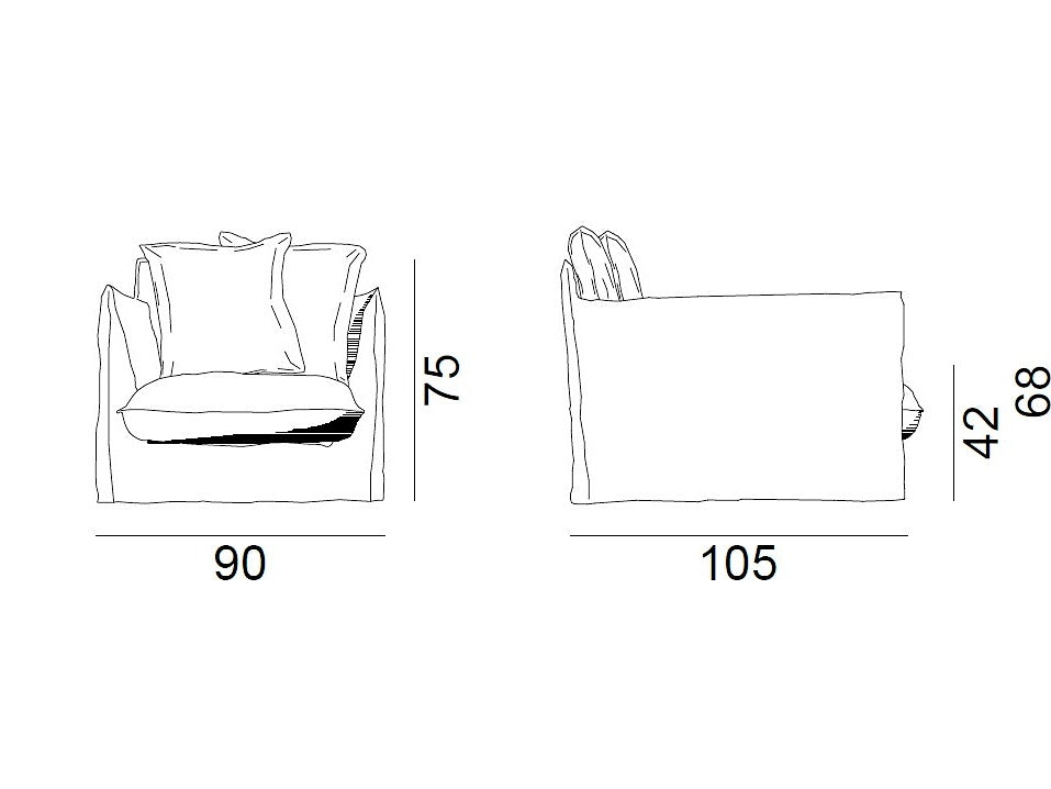 Material : 木製フレーム、ポリウレタンフォーム、ダクロン、ダウン