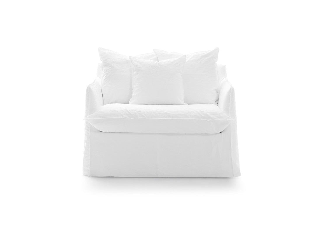 GHOST11は、幅112cmのコンパクトなソファベッドです。普段はソファとして心地よくお使いいただけ、ベッドは下部から簡単に引き出してセットできるため、来客時にもスムーズに対応できます。硬すぎず柔らかすぎないほどよいクッション性で、座っても寝ても快適な使用感を実現。シンプルで洗練されたフォルムが空間に軽やかさを添え、限られたスペースでも上質な寛ぎをもたらします。
