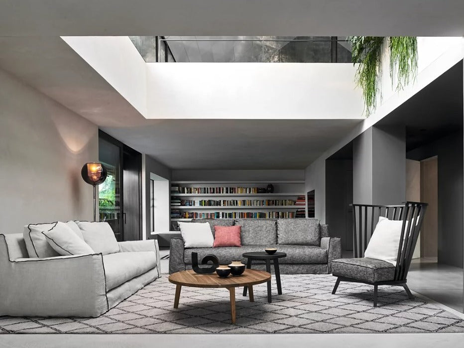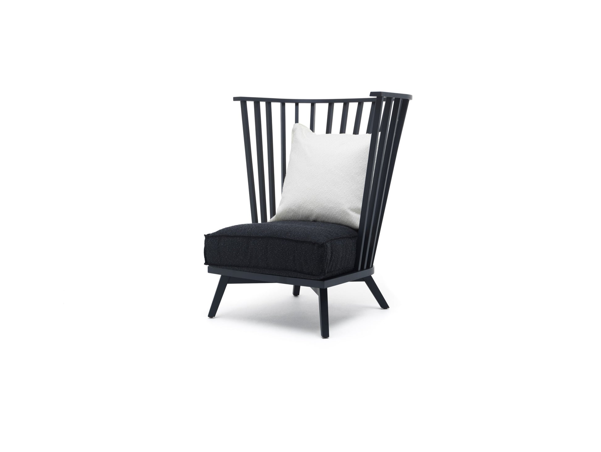 GRAY06は、GRAYシリーズならではのスリット状フレームを取り入れたラウンジチェアで、ハイバックのデザインが大きな特徴です。背もたれが横までしっかりと回り込んでいるため、座ると自分だけのパーソナルな空間が生まれ、読書やリラックスタイムに最適な包まれ感をもたらします。