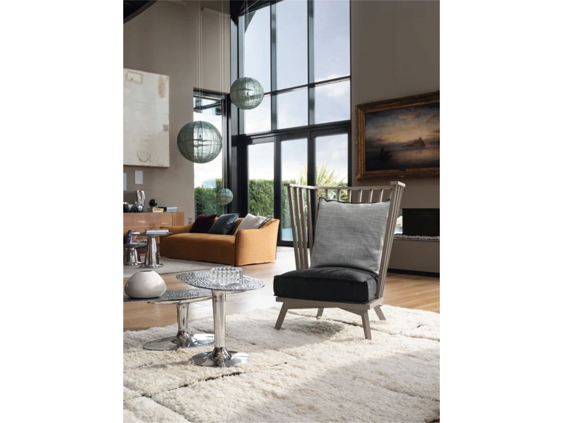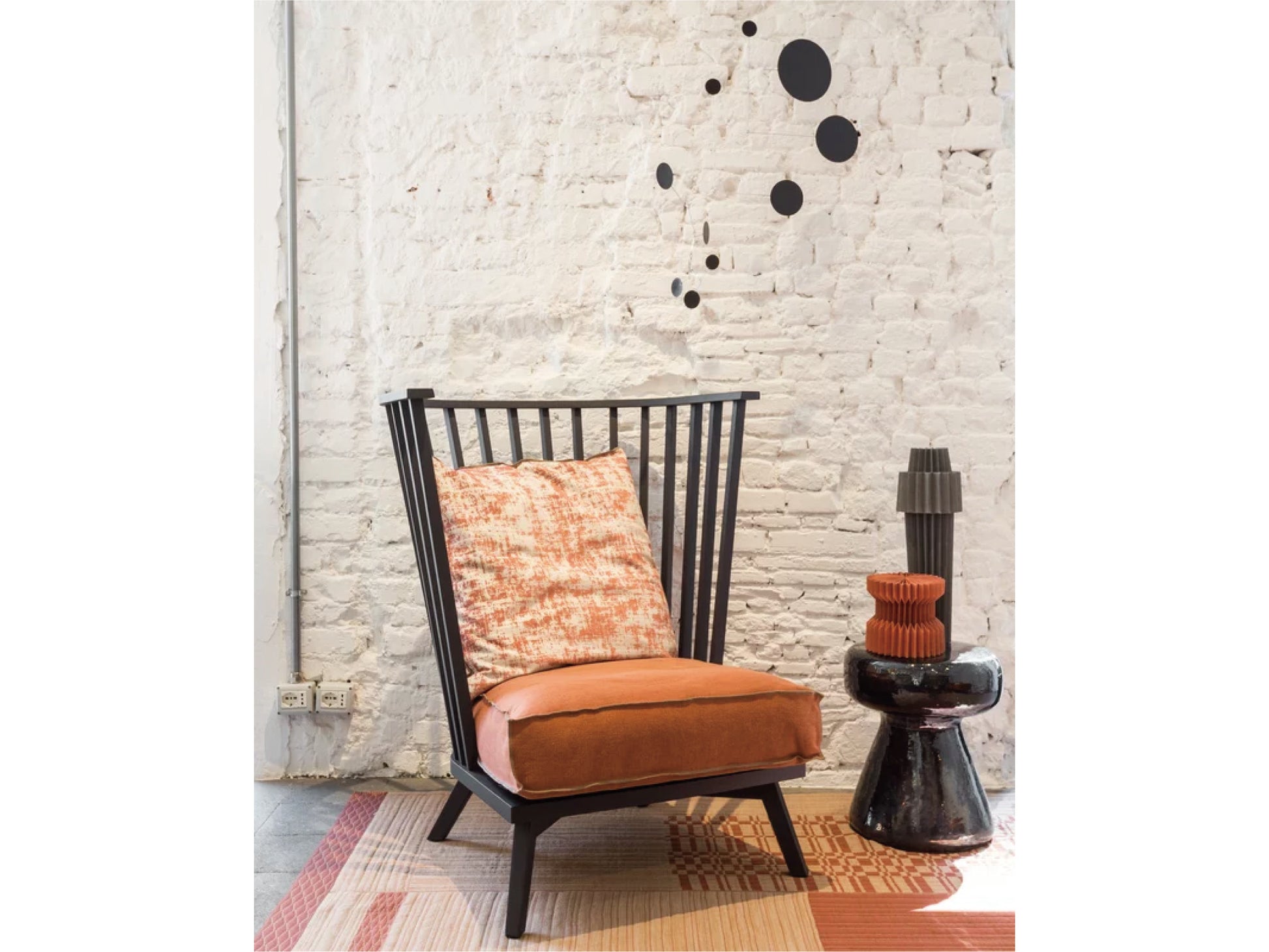 座面とクッションはカバーリング仕様のため、お好みのファブリックに着せ替えて楽しめるのも魅力。季節や気分に合わせて表情を変えながら、長く愛用していただけるラウンジチェアです。
