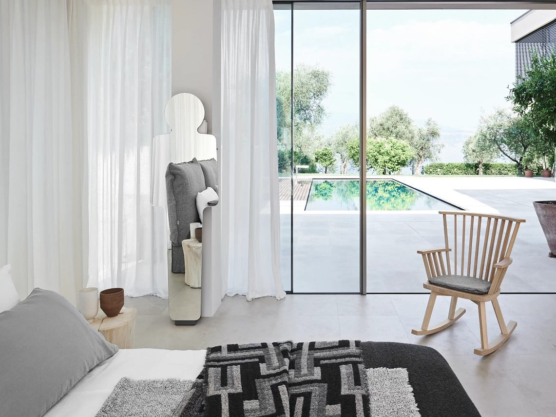GRAY29は、心地よい揺れを楽しめるロッキングチェアです。GRAYシリーズらしいスリット状の背もたれが軽やかな印象を与え、フレームカラーは10色から選択可能。空間に合わせてお好みのカラーコーディネートができます。ゆるやかなロッキングの動きは心と身体をやさしく解きほぐし、読書や休憩のひとときに最適です。ベッドサイドやリビング、ワークスペースなど、どこに置いても自然とリラックスできる存在感が魅力。必要に応じて、オプションのシートクッションを追加すれば、より柔らかく快適な座り心地になります。ディテールの美しさと機能性を兼ね備えた一脚として、ライフスタイルに穏やかな心地よさをもたらします。