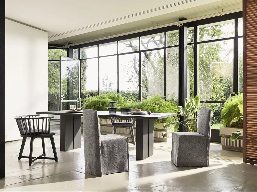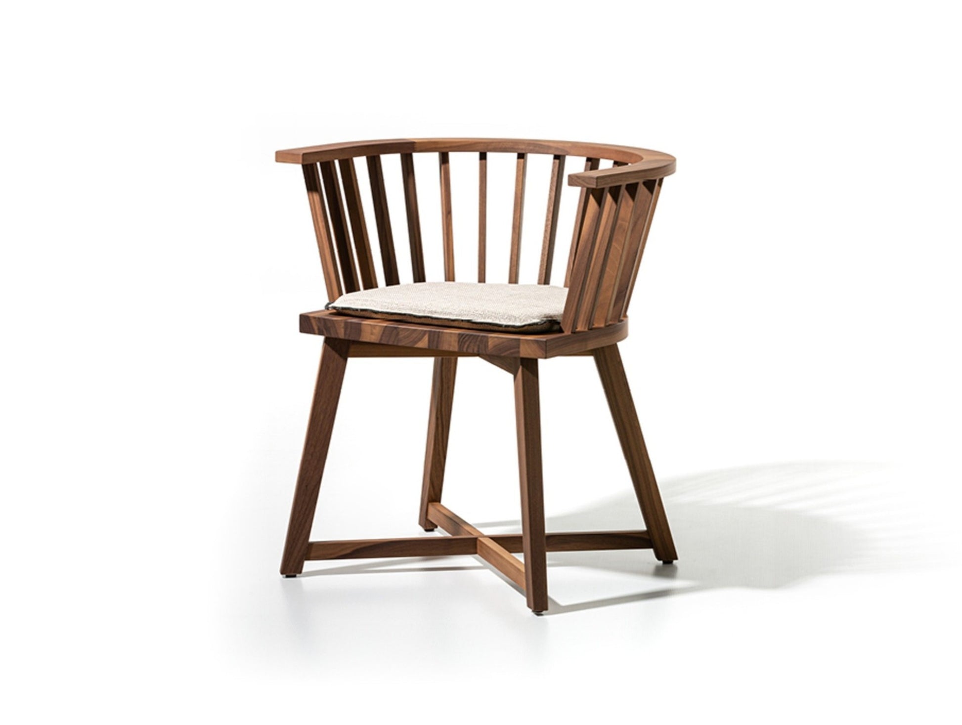 GRAY24は、背からアームへとぐるりと滑らかにつながるラインが美しい、ゆったりとしたダイニングアームチェアです。スリット状の背もたれが軽やかな抜け感を生み、木の存在感を引き立てながらも圧迫感のないデザインに仕上がっています。幅はやや広めで、包み込まれるような安心感があり、長時間の食事や会話の時間も心地よく過ごせます。