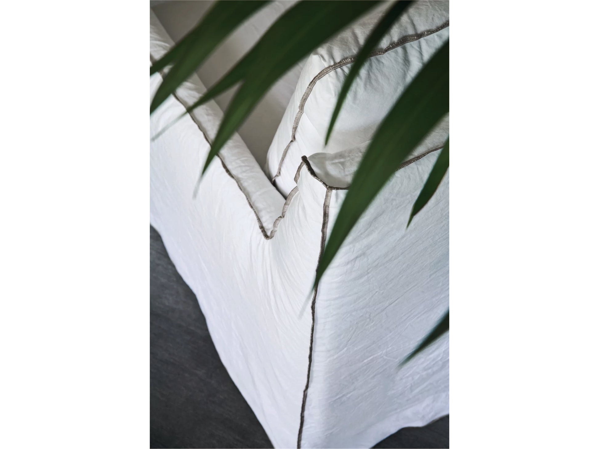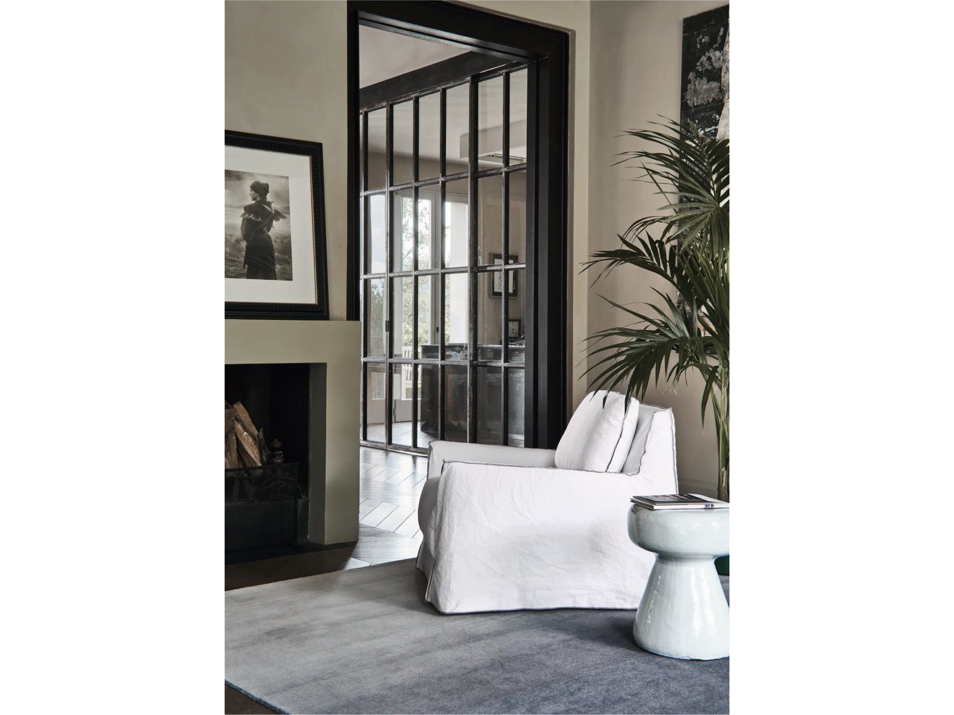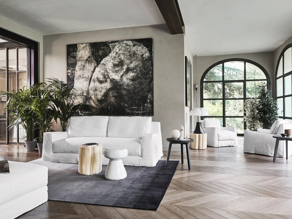 デザインは直線と面の構成で構築された、重厚感のあるシルエット。空間に安定感をもたらしながら、派手さを抑えた上質な表情を演出します。カバーリング仕様のため、ファブリックの掛け替えによって雰囲気を変えられ、長く愛用しやすい点も特徴です。
