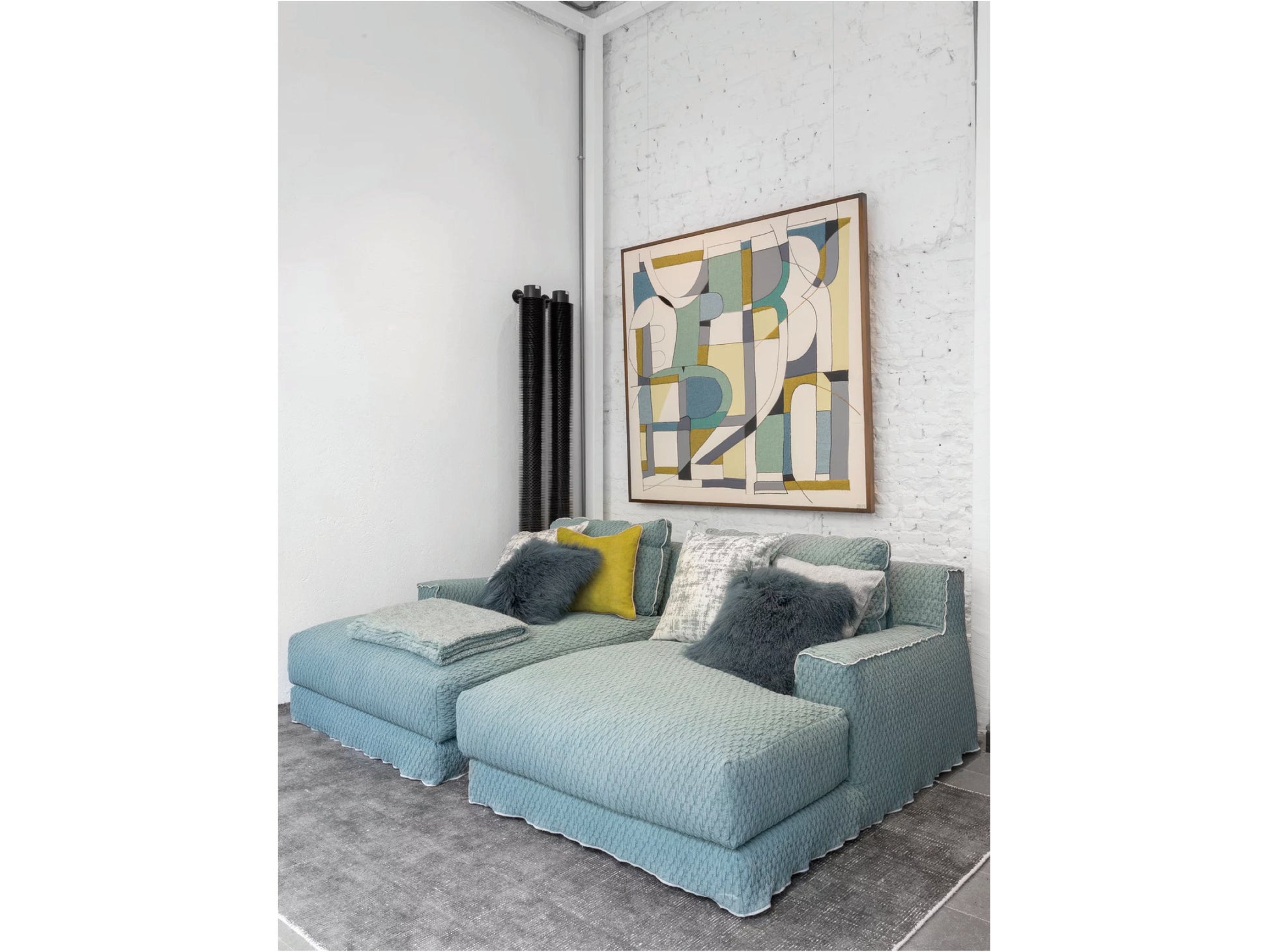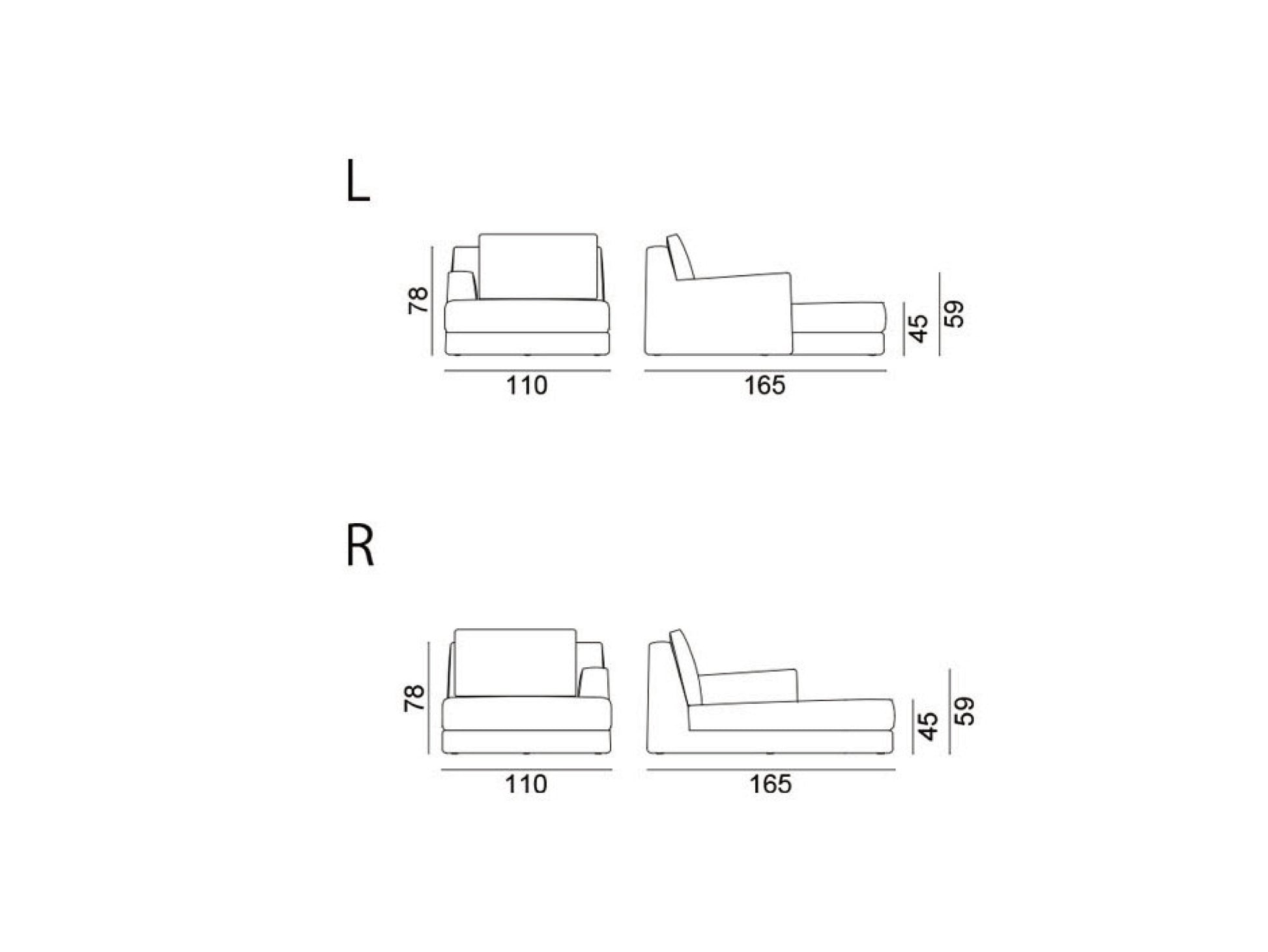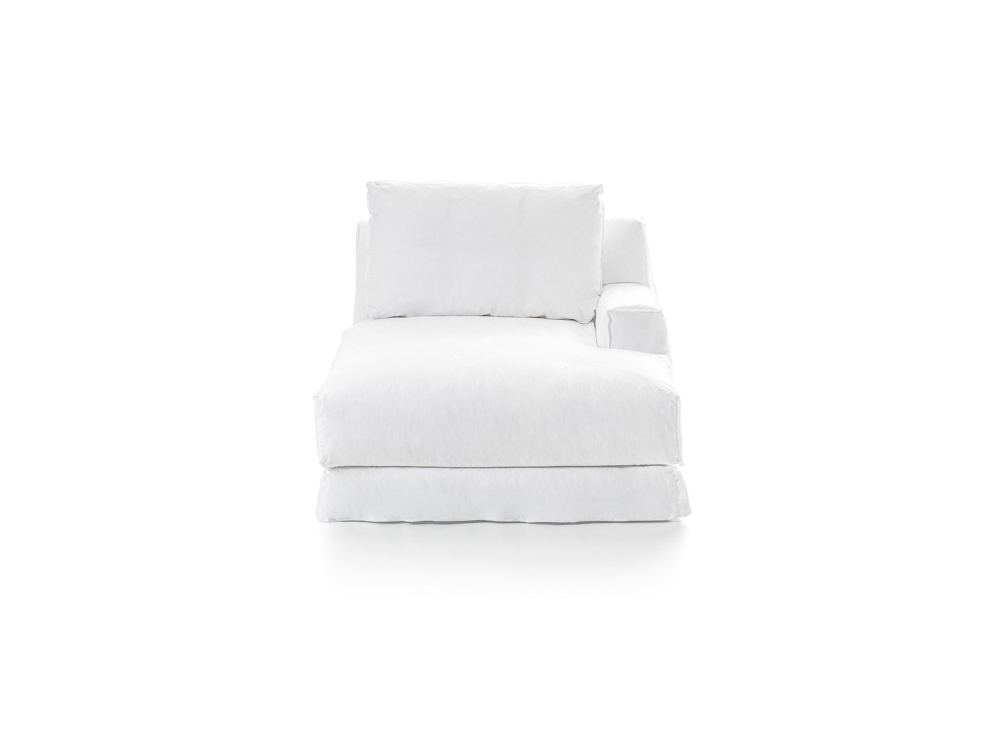LOLLシリーズ共通のウレタン・ダウン・ダクロンによるしっとり柔らかな座り心地はそのままに、身体を包み込むような安心感のある設計です。モジュラータイプのため、同シリーズの他のパーツと組み合わせてL字型や大きなカウチソファのようにレイアウトすることも可能。もちろん単体で使用しても存在感があり、一人掛けのシェーズロングのような感覚で贅沢なくつろぎ方ができます。