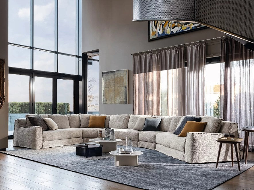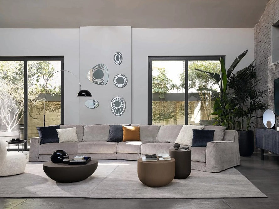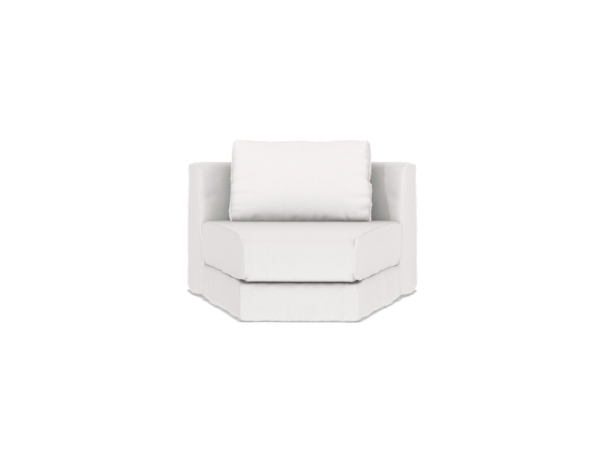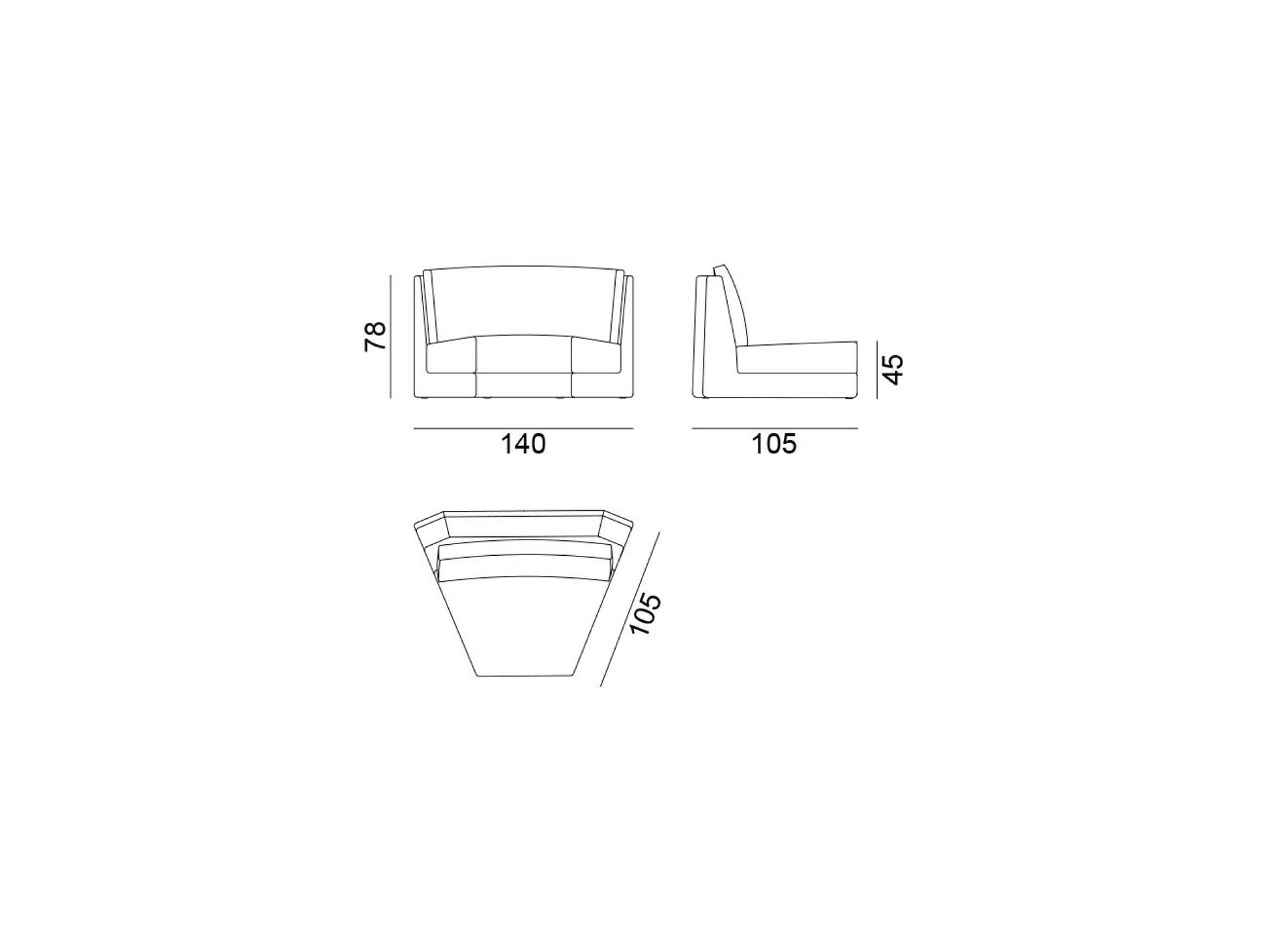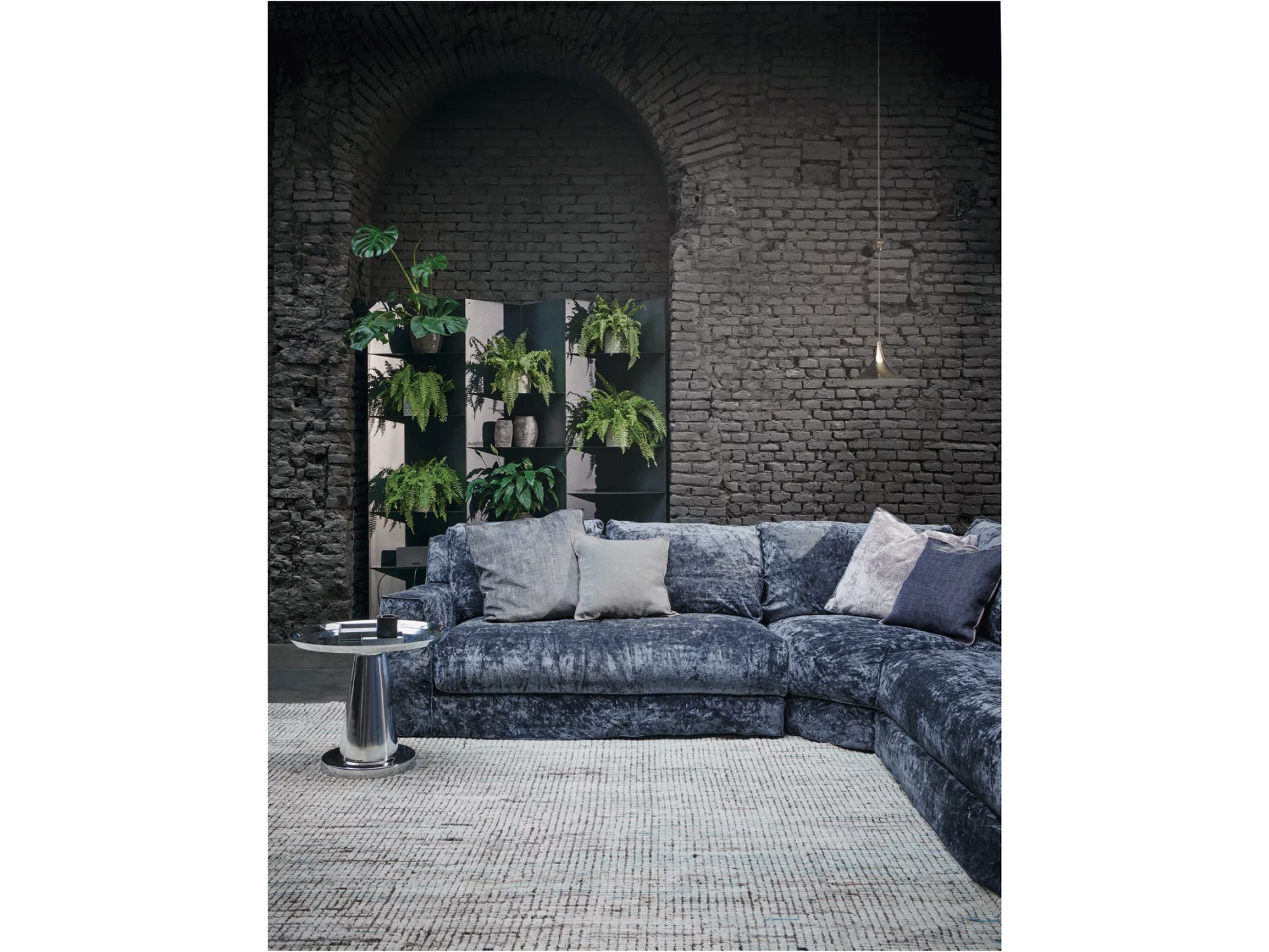 LOLL25ANは、上から見ると三角形のシルエットを持つ、個性的なモジュラーソファです。他のモジュールと組み合わせた際にレイアウトへ角度をつけることができ、空間に動きを生み出す役割を担います。直線的なモジュール同士をつなぐアクセントとして機能し、L字・カーブ・変則的なレイアウトなど、自由度の高い配置が可能になります。