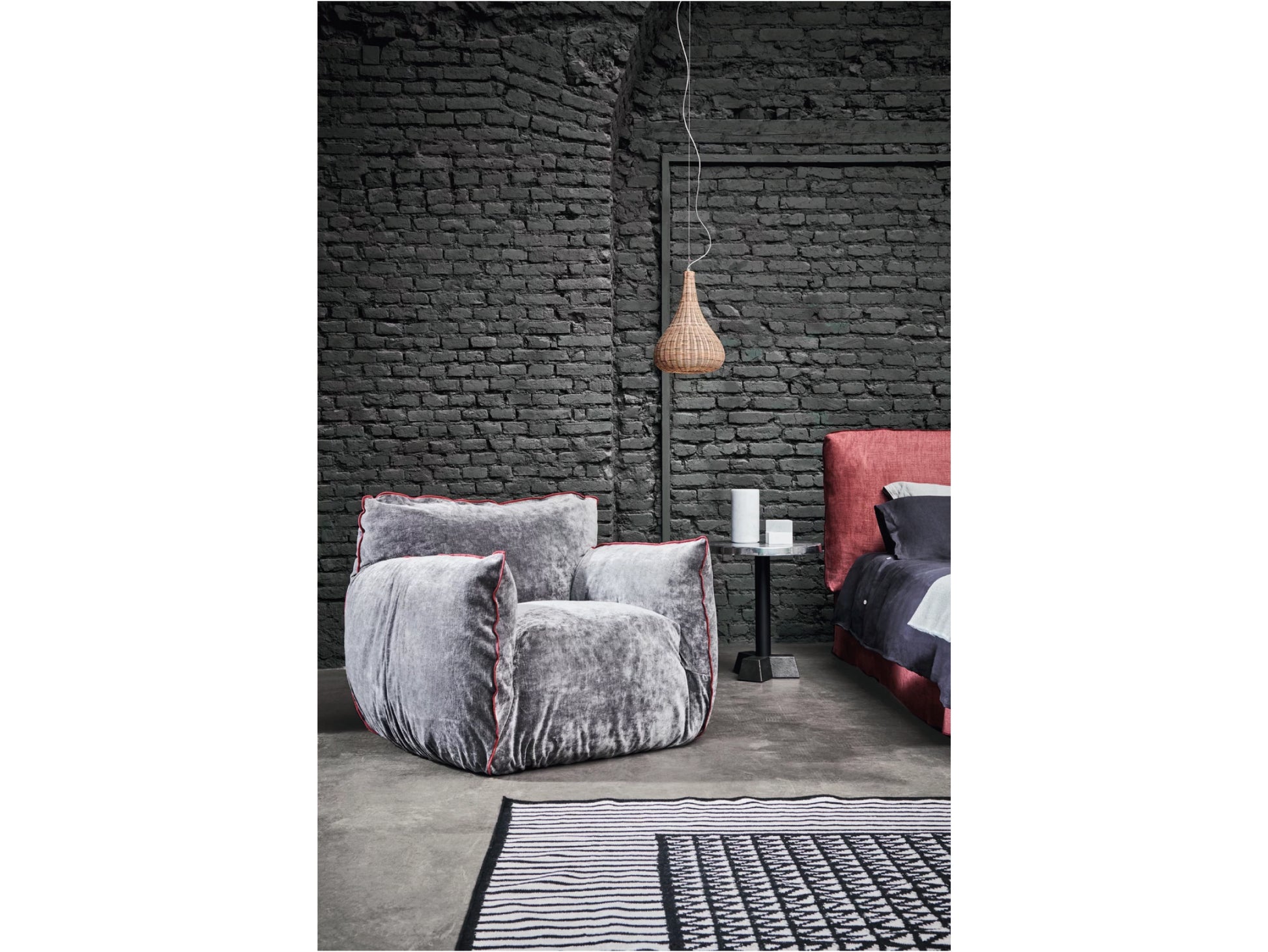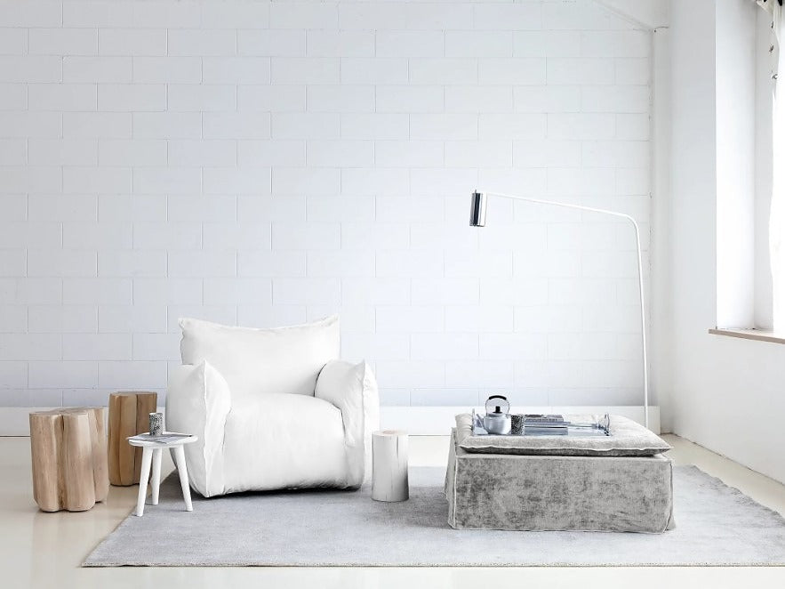 NUVOLA05は、リラックスのための“特等席”としてデザインされたNUVOLAシリーズの一人掛けソファです。丸みを帯びた柔らかく愛らしいフォルムと、しっかりとしたボリューム感のある佇まいが特徴で、空間にやさしく穏やかな存在感をもたらします。