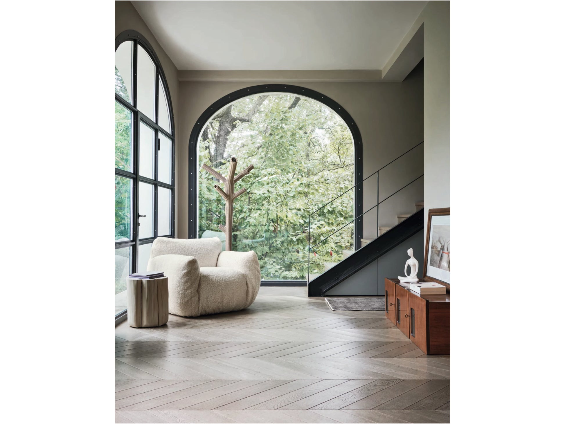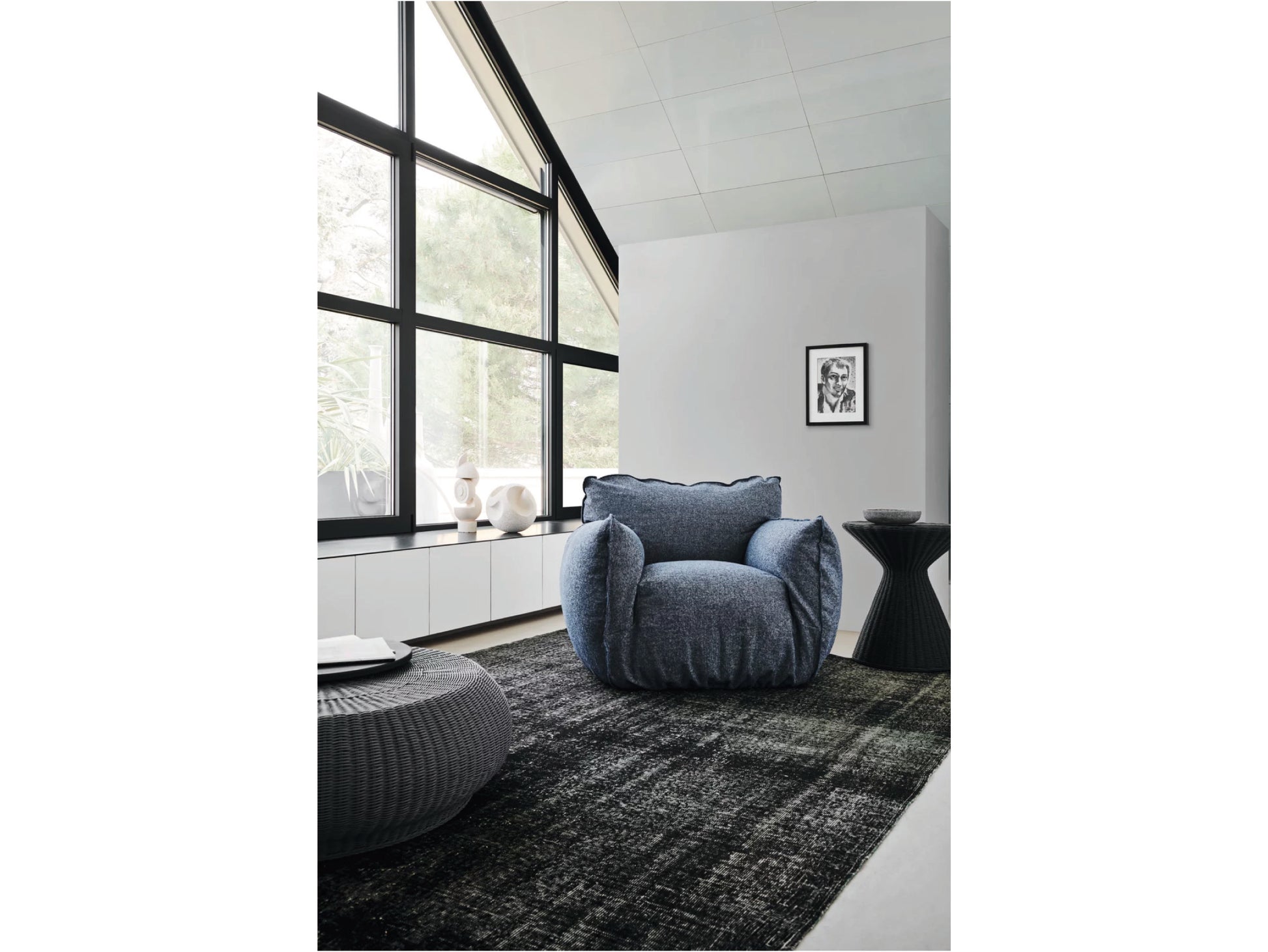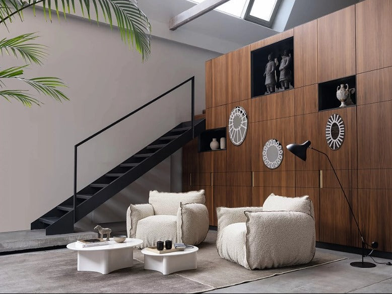 深く設計されたシートと高さのあるアームが身体を包み込み、ふっくらとしたラインが全身を受け止めるような安心感を演出。自然と身をあずけたくなる、抱きしめられるような座り心地が魅力です。