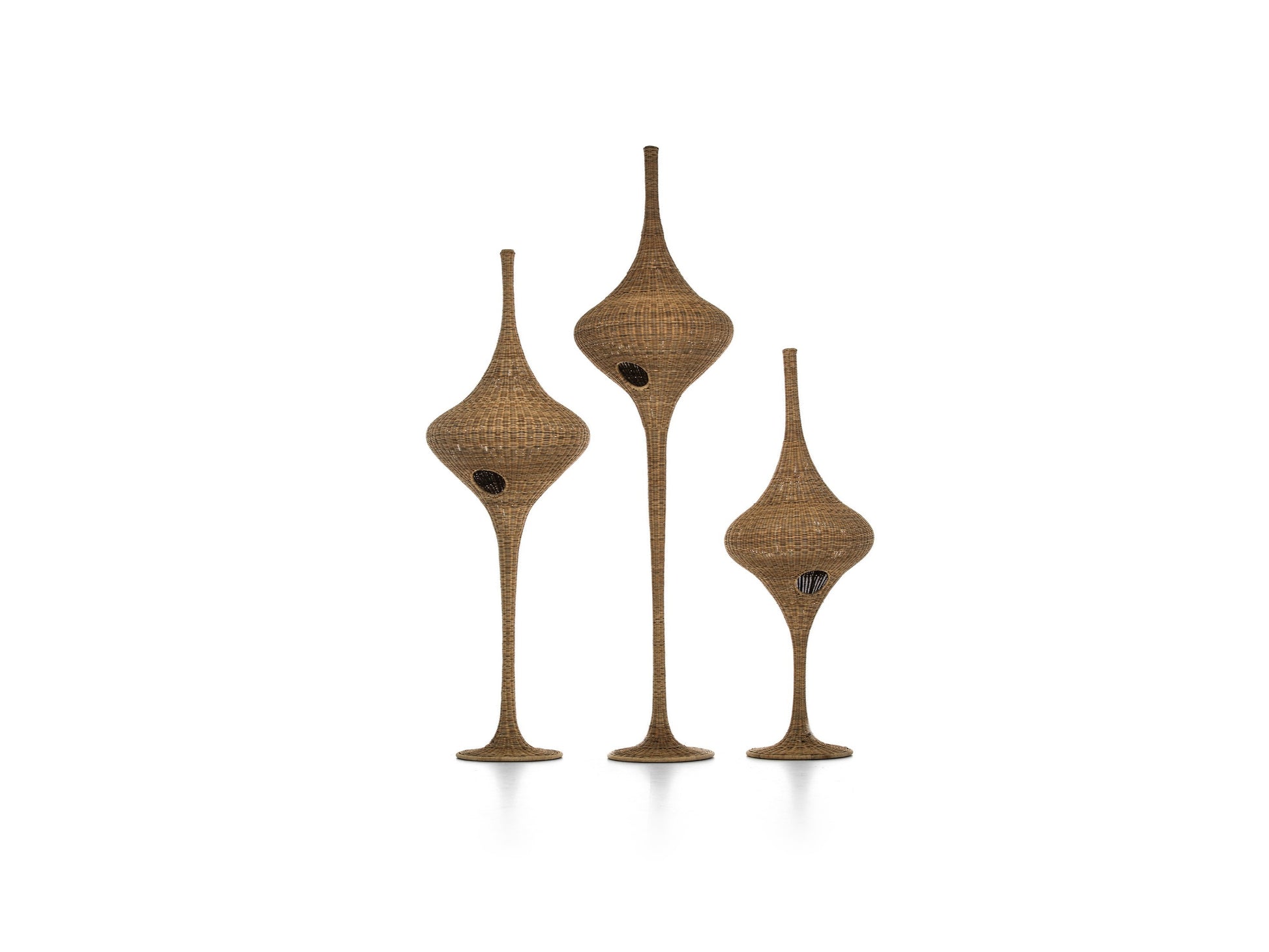 SPINは、自然素材のラタンで丁寧に編み上げられたフロアライトです。柔らかな光を通すラタンの編み目が、空間に心地よい陰影と温もりをもたらします。名前の通り、回転するような立体的なフォルムが特徴で、見る角度によって印象が変化する彫刻的なデザインが魅力です。サイズはS・M・Lの3種類から選べ、異なるサイズを組み合わせて配置することで、リズムのある空間演出が楽しめます。カラーは全9色。ナチュラルからアクセントカラーまで幅広く揃い、リビングやベッドルームなど、さまざまなシーンで穏やかで印象的な光の表情を生み出します。