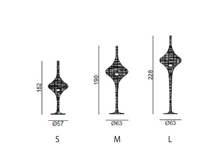 S:φ57 高さ152cm M:φ63 高さ190cm L:φ63 高さ228cm